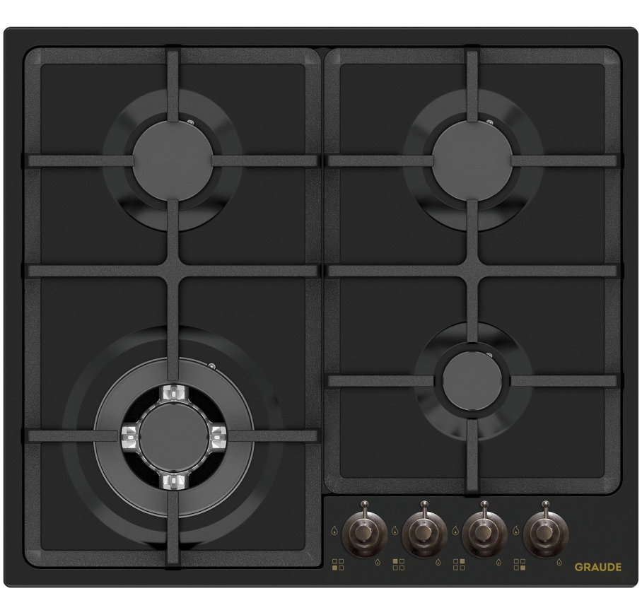 Варочная панель GRAUDE GSK 60.1 SM представлена в цвете «Черная эмаль». Удобное расположение 4-х конфорок, которые предполагают возможность использования любой посуды для приготовления блюд.