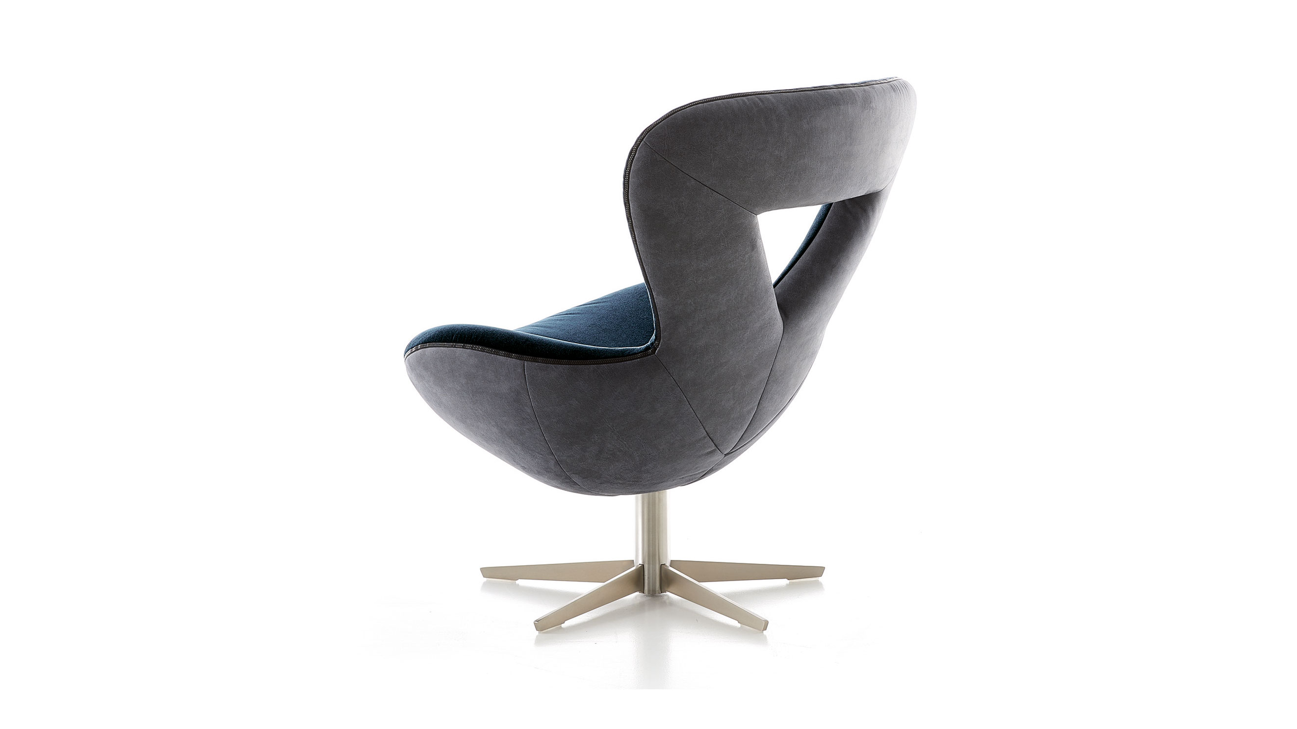 IZUU сочетает в себе геометрические и эргономичные формы. Сиденье напоминает мягкий пуф, который приглашает вас с комфортом опуститься на сиденье, а легкая, свободная обивка усиливает ощущение уюта. Сильная V-образная спинка с треугольным отверстием обеспечивает расслабленное вращение и перемещение по комнате, а ступня в форме звезды обеспечивает прочную основу.